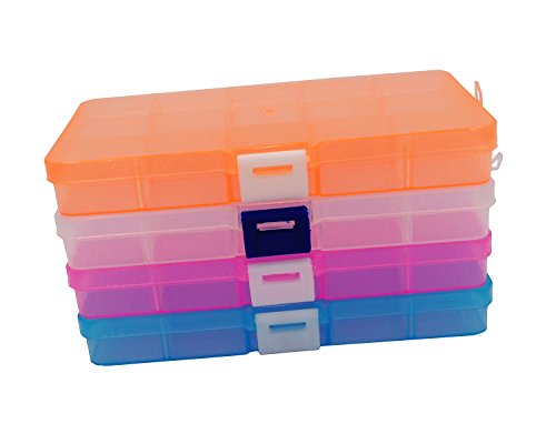 - WIDELY USE: Organizer Storage Box are pack of 4, pink, transparent, blue, Orange, perfect for storing earrings ,rings, beads,or electronic components, spare parts, hardware, clothing accessories, and sketch pencil, pencil sharpeners, eraser and so on.