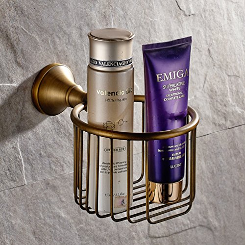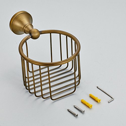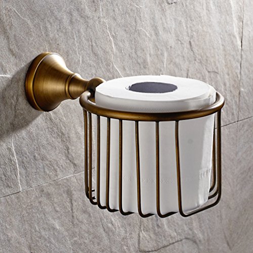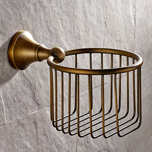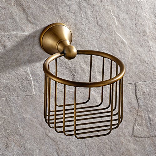Vintage Antique Brass Finish Toilet Paper Holder Wall Mounted Bath Storage Basket