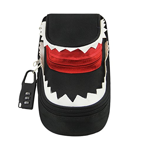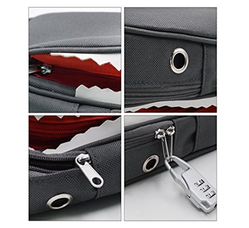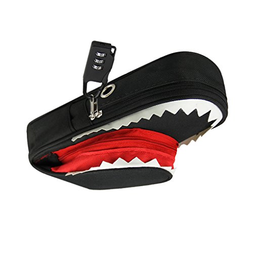 Cute Animal Shark Patern Pencil Case Bag Students Multi-functional Double Layers Pen Holder Pouch Bag Makeup Brush Holder Cosmetics Storage Organizer Coins Bag with Code Lock