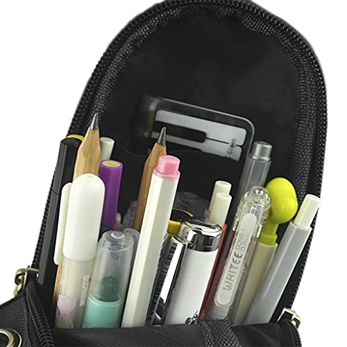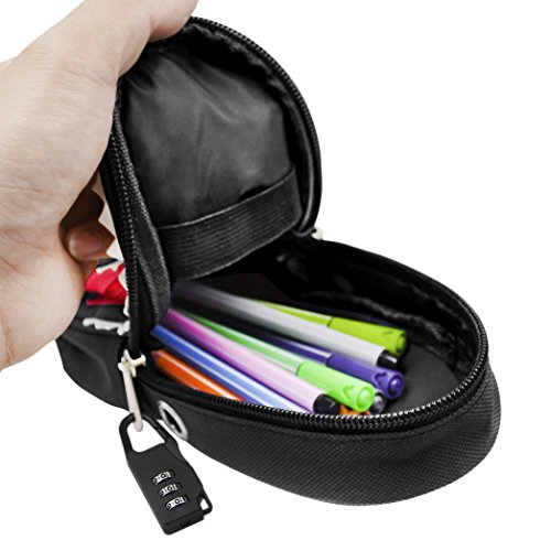 Main pocket for pens, pencils, eraser, ruler, compasses, or other accessories. Extra zipper pocket for small items like coins and others