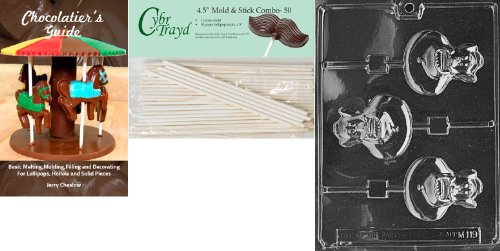 Cybrtrayd 'Genie Lolly' Miscellaneous Chocolate Candy Mold with 50 4.5-Inch Lollipop Sticks and Chocolatier's Guide