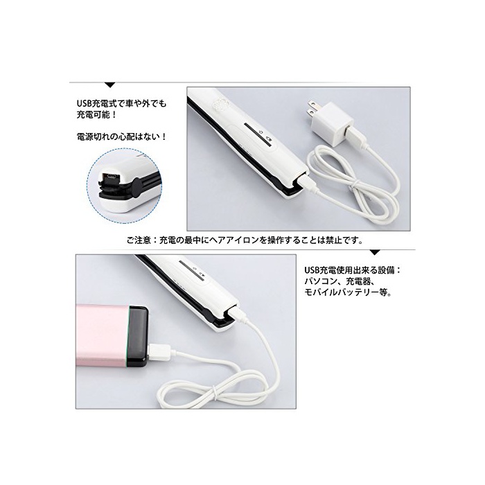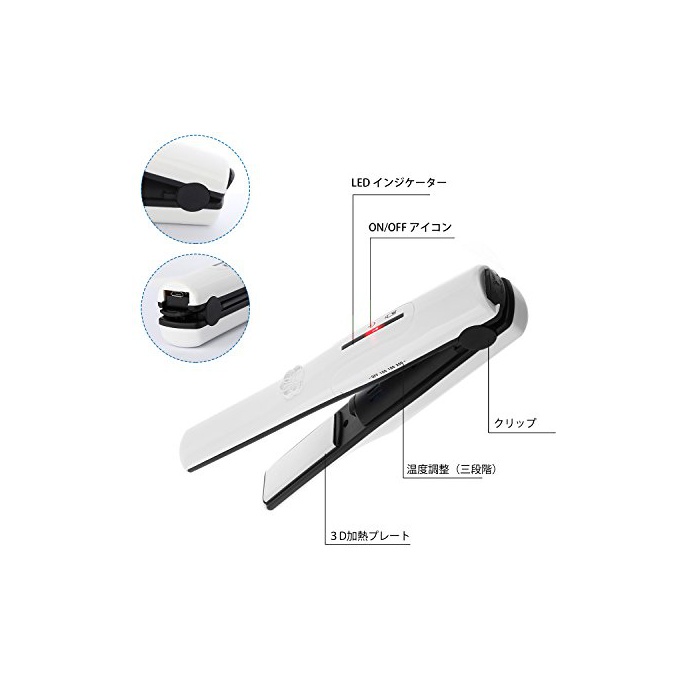 원본상품명: OBEST コドレス ヘアアイロン コンパクト 充電式 USB接用 持ち運び便利 海外使用 LEDランプ表示 3段階度調節 高200℃