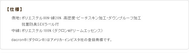 ●中綿:ポリエステル100%(ダクロン・ドリームエッセンス)