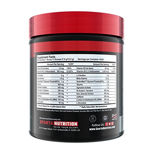 1g of AGMATINE: As if L-Citrulline was enough, Sparta Nutrition added 1g of Agmatine Sulfate to further boost nitric oxide and help support blood flow to your muscles while training.