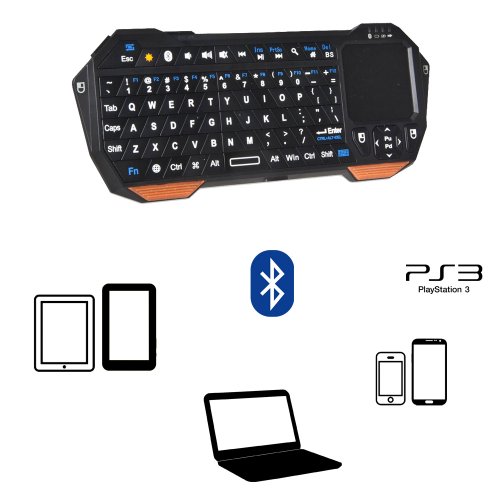 -. Title : Fosmon® Portable Lightweight Mini Wireless Bluetooth Keyboard Controller (QWERTY keypad) with Built-In Touchpad for Apple iOS / Android / Windows Smartphones, Tablets, PS3 / PS4, Laptop, Notebook and others (Black & Orange)