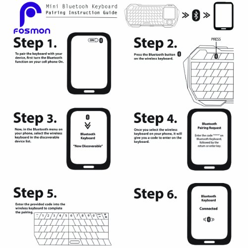 -. Feature : Fosmon mini wireless bluetooth keyboard (Build in touchpad and Full QWERTY keyboard) / Bluetooth keyboard works perfectly making texting accurate and easy. Also user friendly for PS3 gamer / Main feautre button such as Home, page up/down, volume control, Ctrl+Alt+Dlt, Esc, Search, etc... / Portable, elegant and lifestyle design; Lightweight and convenient to carry around / LED blacklight helps when using it in dark environment. Built-in rechargeable lithium-ion battery (Micro USB cable included)