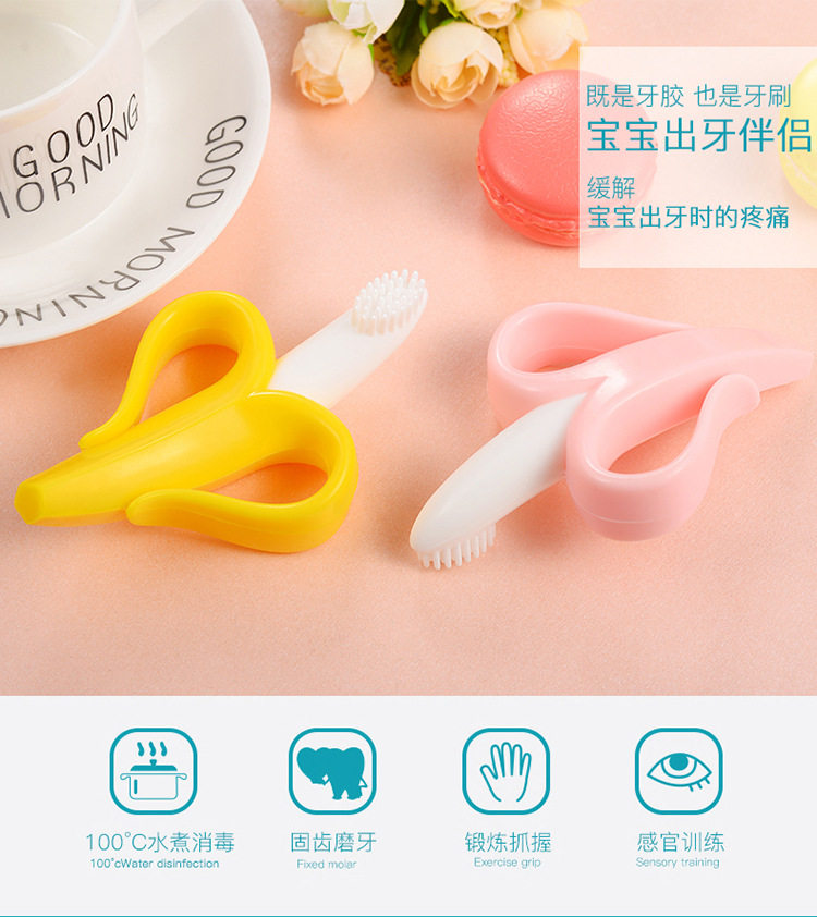 Baby toothpaste molar stick silicone toy baby training banana toothbrush 24227