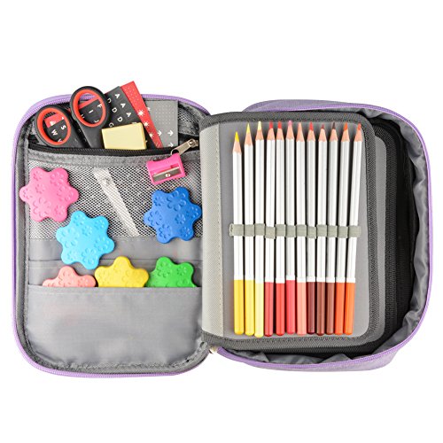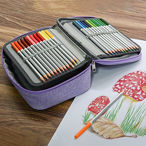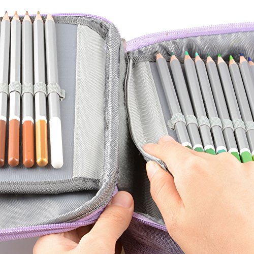 72 Slot Pencil Bag, J&D Portable Double Zipper Colored Pencil Organizer Sleeve Bag with Large Capacity (Purple)