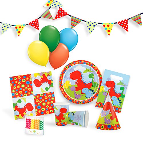 -. Title : Little Dinosaur Party Supplies Set for 12 - Birthday Party Kit includes Cups, Plates, Napkins, Balloons, Hats, Favor Bags, Candles and Banner