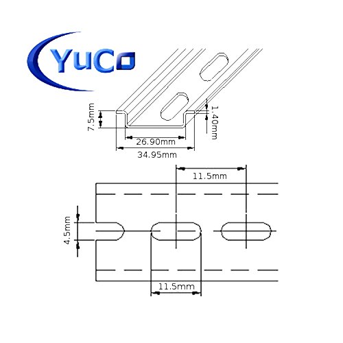 YC-DR-1m YuCo FACTORY CUT 1m ( 1m=39.37" ) STEEL DIN RAIL 35 X 7.5mm SLOTED PR0055 ASI