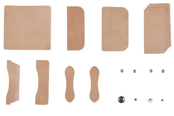 サドルレザーを使用した手縫い革キットです。作るほどに手縫いの技術と構造を理解でき、使い込むほどに味わいが深まる経年変化を楽しめます。小銭入れに革の可塑性を利用したかぶせタイプ採用しました。革の特性を理解し、ジャンパードットやコンチョの取り付けも習得できます。