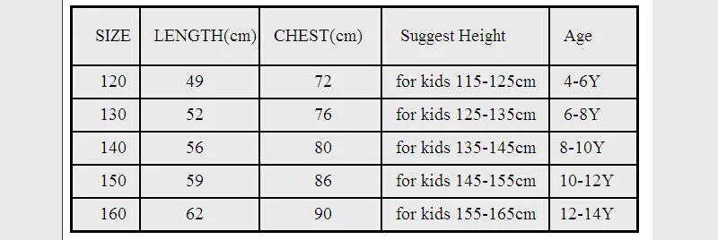 Size: 120 cm-160 cm, 6-7-8-9-10-11-12-13-14