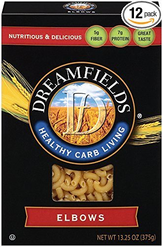 -. Binding : Grocery -. Brand : Dreamfields -. EAN : 0767387034096 -. Feature : Dreamfields has 5 grams of fiber and 7 grams of plant protein per serving / Dreamfields Helps you feel full with a balance of fibers and plant proteins / Dreamfields contains a Prebiotic fiber which helps promote healthy digestion / Dreamfields has all of the Taste and texture of traditional pasta -. Label : Dreamfields Pasta -. Manufacturer : Dreamfields Pasta -. NumberOfItems : 12 -. PackageQuantity : 12 -. ProductGroup : Grocery -. ProductTypeName : GROCERY -. Publisher : Dreamfields Pasta -. ReleaseDate : 2008-05-02 -. Studio : Dreamfields Pasta -. Title : Dreamfields Pasta Healthy Carb Living, Elbow Macaroni, 13.25-Ounce Boxes (Pack of 12) -. UPC : 767387034096