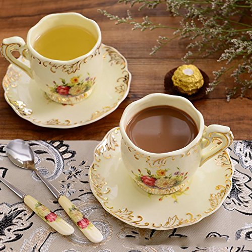 -. Title : QINQIN British coffee cup Continental Cup and saucer set vintage ceramic tea set (6 cups 6 disc 6 teaspoons)