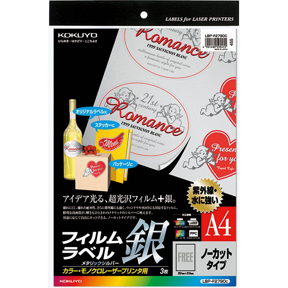 Kokuyo color laser and color copy film label A4 3 sheets of metallic silver LBP-F2790C (japan import)