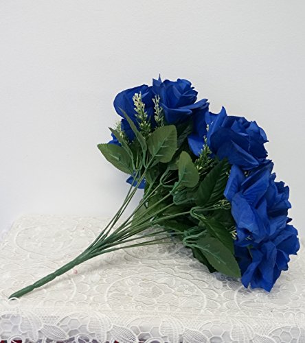 - Title : Sweet Home Deco 15'' Super Soft Large Silk Artificial Rose Bouquet (18 Flower Heads), Home/ Wedding Decorations (1, Royal Blue)