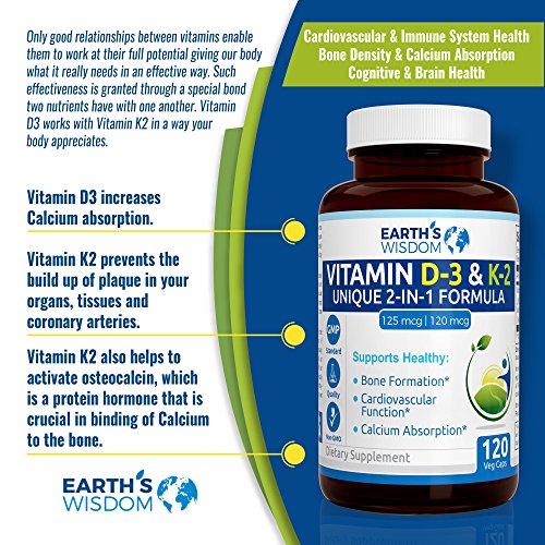 PLEASE NOTE: Unlike our competitors, we offer 5,000 IUs of D3 and 120mcg of MK7 in 1 (one) capsule.Brand : EARTH'S WISDOM