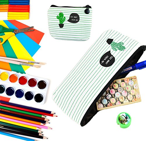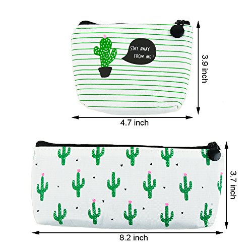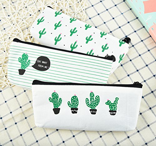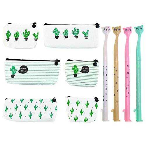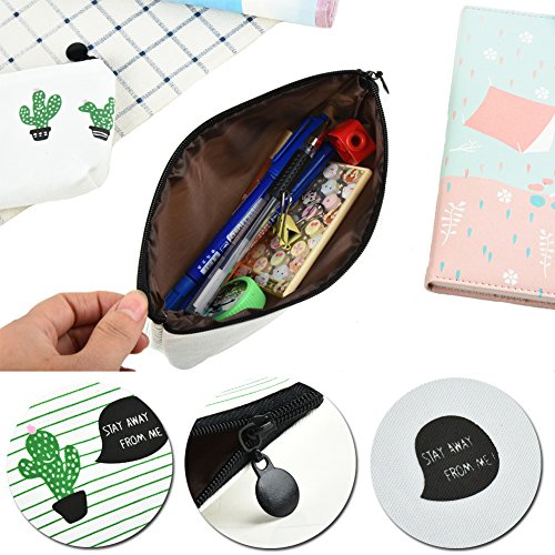 6 PCS Printed Cactus Pencil Case,Someamy Canvas Pencil Case Pouch Purse Bag Large Capacity Stationary & Cosmetic Makeup Bag with 4 Pcs Cute Pens