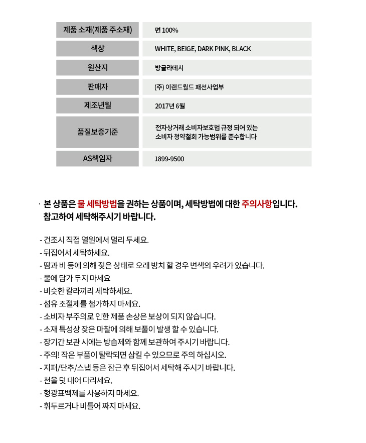 상품 실측 사이즈