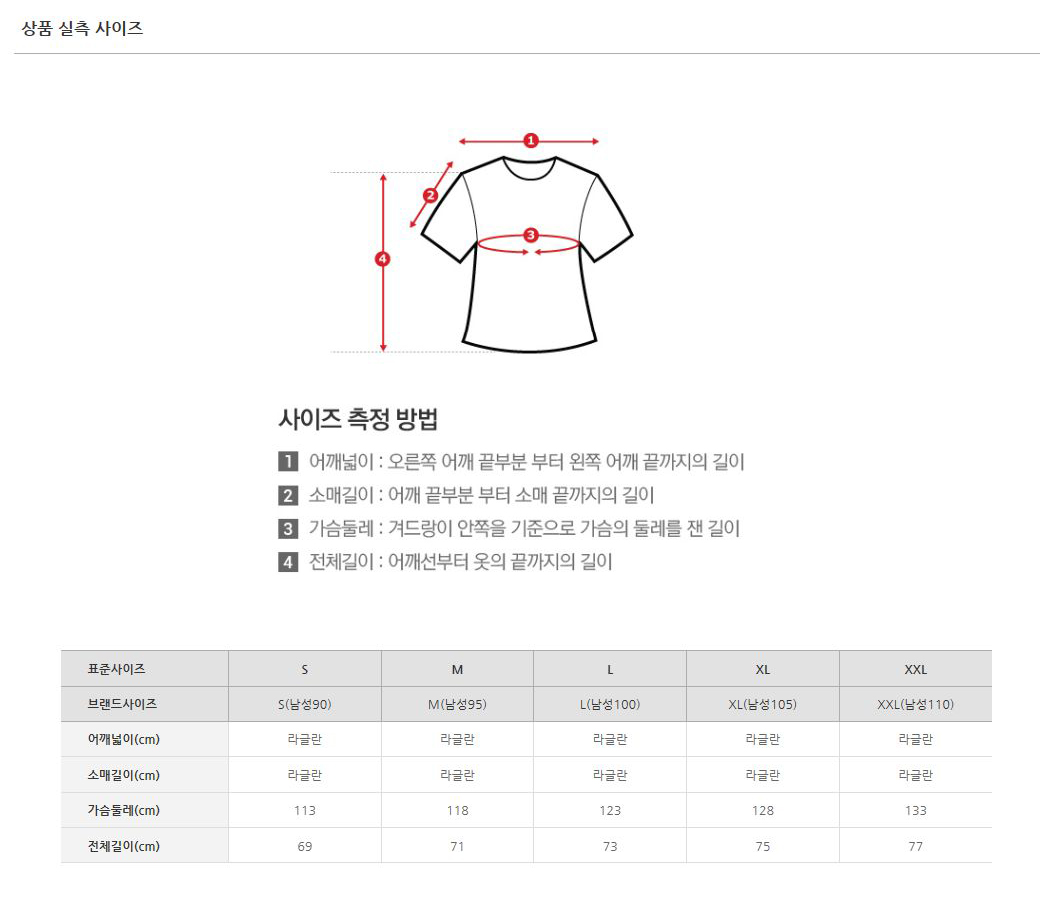 브랜드사이즈 S M L XL