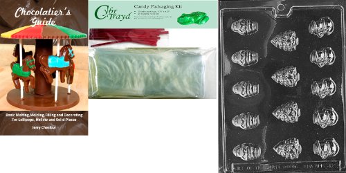 Cybrtrayd B.S. Tree, Santa, Snow Chocolate Mold with Chocolatier's Bundle of 25 Cello Bags, 25 Red Twist Ties and Chocolatier's Guide