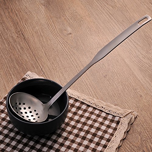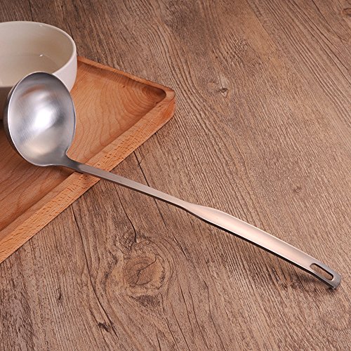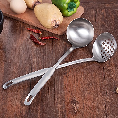Product Detail: Item Name: Soup Slotted and Colander Spoon Set Length: 12" Width: 2.95" Weigth: 0.26lb(soup ladle) 0.24lb(colander spoon) Material Type: stainless steel Color: matte silver Box includes 1 pcs soup ladle and 1 pcs conlander spoon