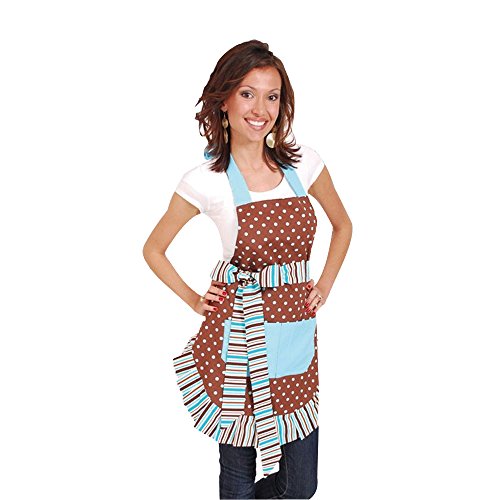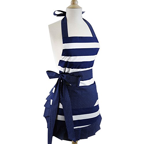 Women's Plus Size Cute Fashion Cotton Aprons for Women Girls Vintage Cooking Retro Apron with Pockets (blue and white)