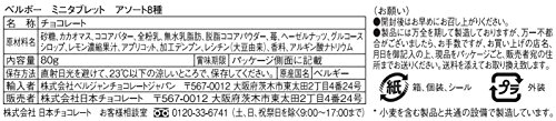 原材料:砂糖、カカオマス、ココアバター、全粉乳、無水乳脂肪、脱脂ココアパウダー、苺、ヘーゼルナッツ、グルコースシロップ、レモン濃縮果汁、アプリコット、加工デンプン、レシチン(大豆由来)、香料、アルギン酸ナトリウム