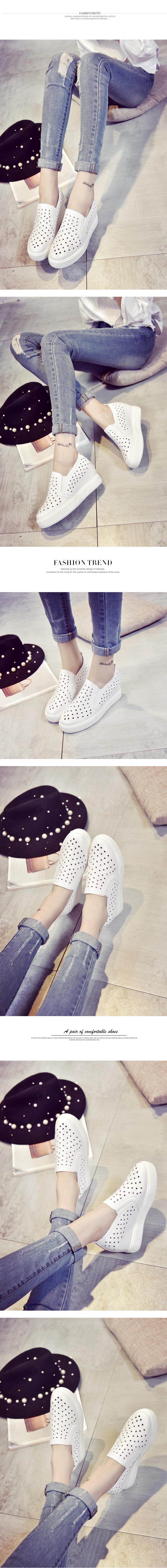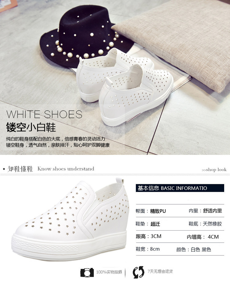 韩版小白鞋春夏内增高女乐福鞋懒人一脚蹬厚底镂空学生休闲鞋单鞋