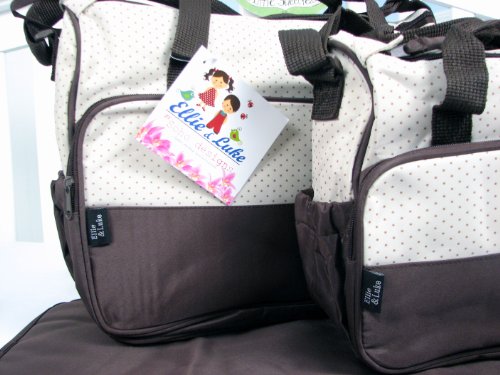 - Feature : 6 pieces set of diaper bag / Extra roomy main compartment with multipe pockets ,Reliable zip-top closure / Padded changing station, little accessory case with zipper / zippered wipes case, Insulated zippered bottle bag, fits any size bottle / Food diaper bag with zip closure and carrying strap