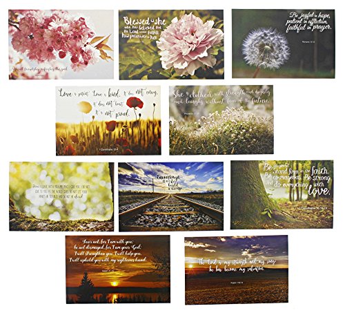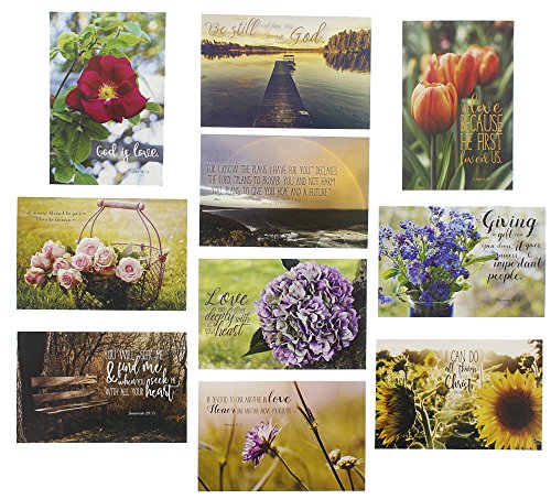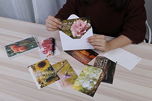 Bible Verse Christian Inspirational Quotes Postcards - 20 Glossy Floral Design Postcards - Bulk Set - 4 x 6 Inches