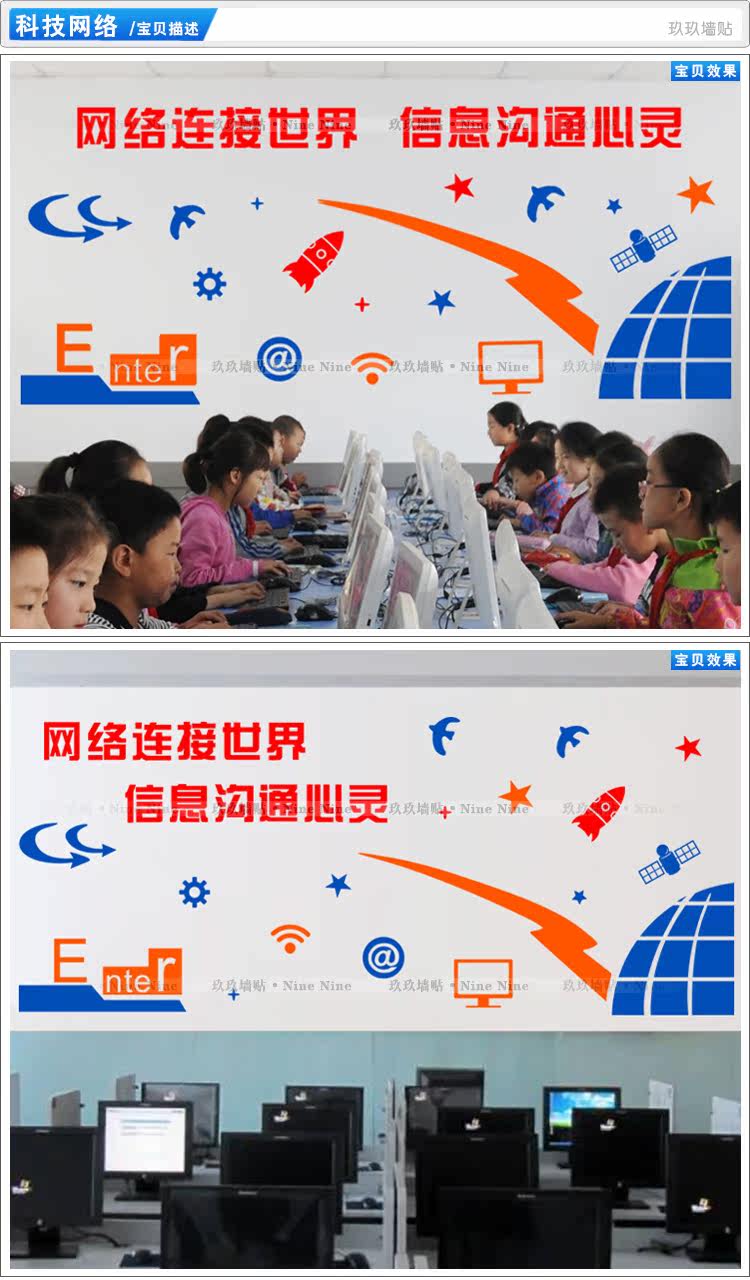 学校计算机房计算机室墙贴电脑房网络连接科技室科技馆贴纸贴画