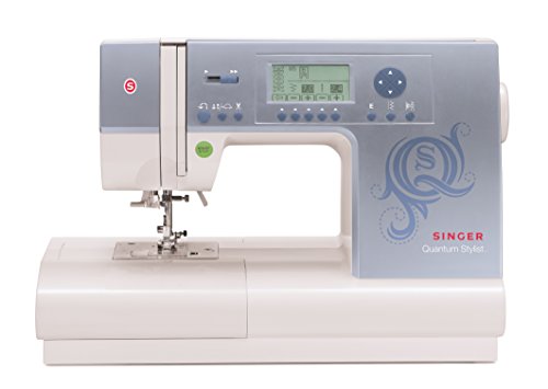 The SINGER Quantum Stylist sewing machine has everything you need and more. Its 600 built-in stitch patterns including five alphanumeric fonts and 13 fully automatic one-step buttonholes with exclusive buttonhole underplate, mirror imaging, and stitch elongation options that give you the freedom to customize your projects. Start-up is a breeze with quick-and-easy threading, automatic stitch length and width, stitch editing capabilities, a start/stop button, and direct button stitch selection. The Quantum Stylist features a one-touch automatic thread cutter that automatically trims the upper and lower thread leaving your machine ready to start the next seam. With additional features like programmable needle up/down, slow sewing speed option, LCD screen, electronic twin needle control, automatic tension, extra-high presser foot lifter, free arm, drop feed, and warning animation, this machine truly has it all. Included accessories: Adjustable bias binder foot--make beautiful edges using your favorite bias tape, Single-welt cording foot--provides professional finish on upholstered and home d�cor projects, Braiding foot and guide--guides and stitches trims, braids and cords for decorative embellishments, Stitch-in-the-ditch foot--helps create perfect seams and edges on quilts, fancy-trim foot, clear piping foot, clearance plate, all-purpose foot, zipper foot, button sewing foot, satin stitch foot, buttonhole foot with underplate, open toe foot, blind hem foot, overcasting foot, narrow hem foot, cording foot, 1/4-inch foot, darning & embroidery foot, even feed foot, pack of needles, bobbins, seam ripper, brush, auxiliary spool cap, spool pin felt, screwdrivers, thread spool caps, seam guide, and quilting bar.Feature