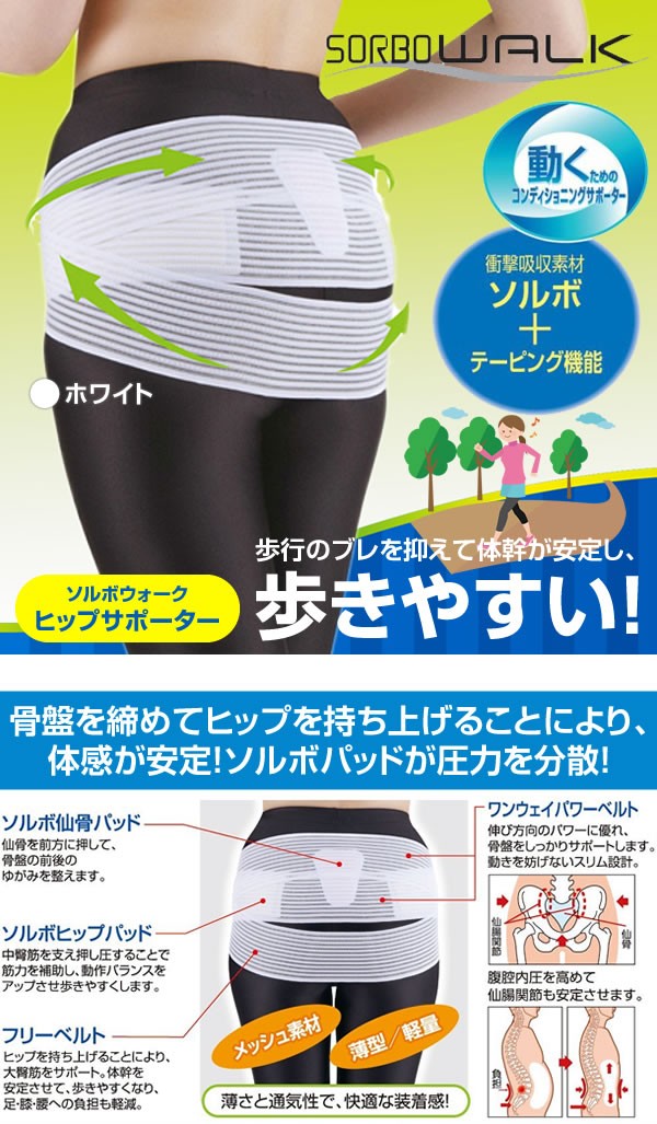 | <h1>ソルボ×テーピングで快適歩行!シニアにもオススメのヒップ(腰・骨盤)サポーター。</h1> |