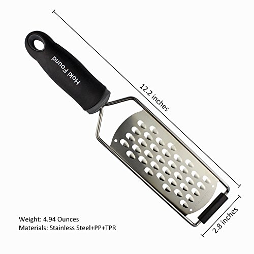 Hoki Found Cheese Grater Shredder Stainless Steel - Food Grater for Kitchen - Vegetable Grater - Coarse Grater Zester - Fruit Grater, Black