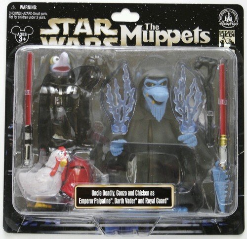 -. Binding : Toy -. Brand : Disney -. EAN : 0610079166486 -. Feature : Created especially for Walt Disney World Resort and Disneyland Resort / Featuring Uncle Deadly, Gonzo and Chicken as Emporer Palpatine, Darth Vader and Royal Guard / Evokes the feeling of classic Star Wars figures / Sold out limited edition from Star Wars Weekends at the parks in 2013 / Super cute and collectible -. IsAdultProduct : 0 -. Label : Disney Parks -. Manufacturer : Disney Parks -. MPN : MuppetDeadly -. PackageQuantity : 1 -. PartNumber : MuppetDeadly -. ProductGroup : Toy -. ProductTypeName : TOYS_AND_GAMES -. Publisher : Disney Parks -. Studio : Disney Parks -. Title : Disney Star Wars Weekends 2013 Muppets Uncle Deadly Gonzo Figure Darth Vader -. UPC : 610079166486