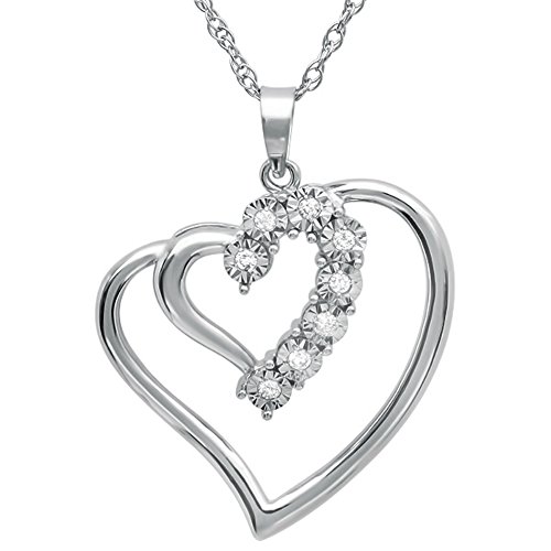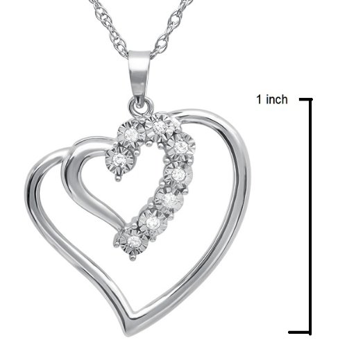 -. Binding : Jewelry -. Brand : Amanda Rose Collection -. Department : womens -. Feature : 1/10 ct of Genuine Diamonds ( may vary by .02ct) / Sterling Silver Heart and 18inch Chain / The heart itself measures 1 inch / All of our diamond suppliers and MLG state that to the best or their/our knowledge that all of our diamonds are conflict free. -. Label : Amanda Rose Collection -. Manufacturer : Amanda Rose Collection -. Model : OK9021 -. MPN : OK9021 -. PackageQuantity : 1 -. PartNumber : OK9021 -. ProductGroup : Jewelry -. ProductTypeName : FINENECKLACEBRACELETANKLET -. Publisher : Amanda Rose Collection -. Studio : Amanda Rose Collection -. Title : Sterling Silver Journey Diamond Double Heart Pendant on an 18 inch Chain ( 1/10cttw)