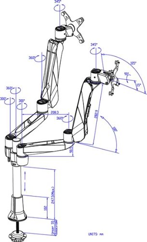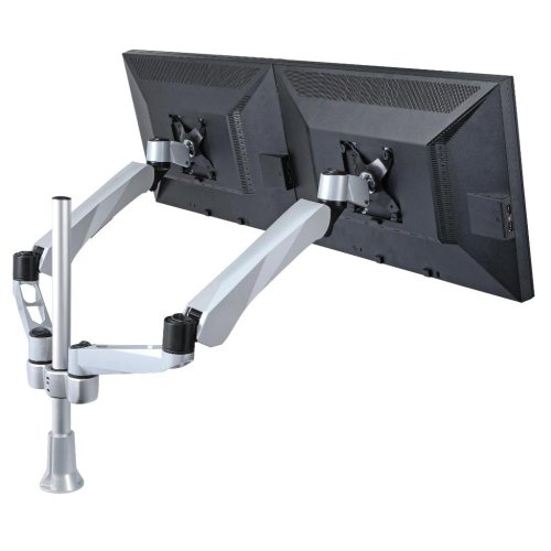 Desk-mountable, supports up to two 27-Inch LCD monitors; pole length: 19.68-Inch (500mm), makes it expandable to support 3 or 4 monitors with additional arms; available in clamp base and grommet base; Solid Aluminum die-cast construction