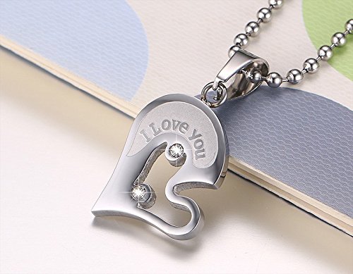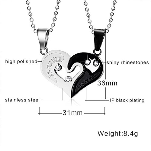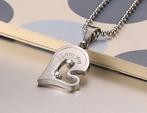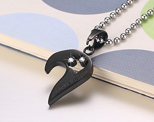 -. Binding : Jewelry -. Brand : Yeegor -. Color : Black -. Department : girls -. Feature : Material: Stainless Steel + Cubic Zirconia; / Size: pendant: 36mm*31mm; with 2 22 inch chain, 22 inch chain more suitable for couples than 20 inch chain. / Special heart design with word "I Love You", showing your love to your better half on Valentine's Day or anniversary. / Unique heart puzzle couple pendant, a perfect accessory to your outfit or as an approP.R.Iate gift to lovers, couples. / 3-level Quality Control; Hand Polishing ; One by One Checking; Individual Package. -. Label : Yeegor -. Manufacturer : Yeegor -. ProductGroup : Jewelry -. ProductTypeName : FASHIONNECKLACEBRACELETANKLET -. Publisher : Yeegor -. Studio : Yeegor -. Title : Stainless Steel Men Women I Love You Heart-shape Pendant CZ Puzzle Matching Couple Necklace