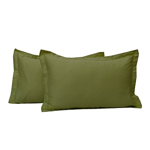 350Thread-Count LaxLinen Super Soft Quality 2pc-OXFORD Pillow Sham King , Olive/Moss Solid 100% Egyptian Cotton