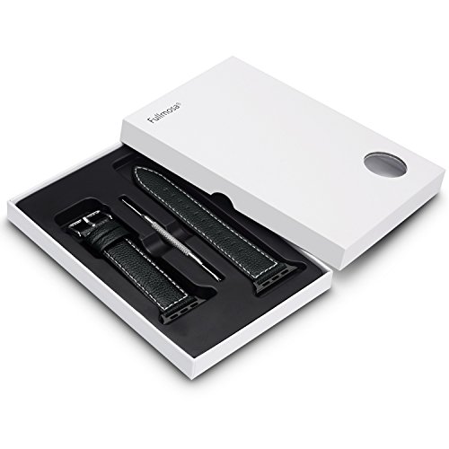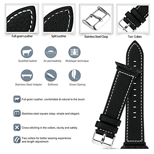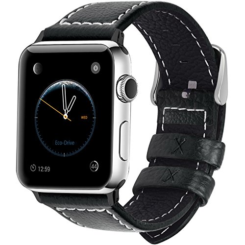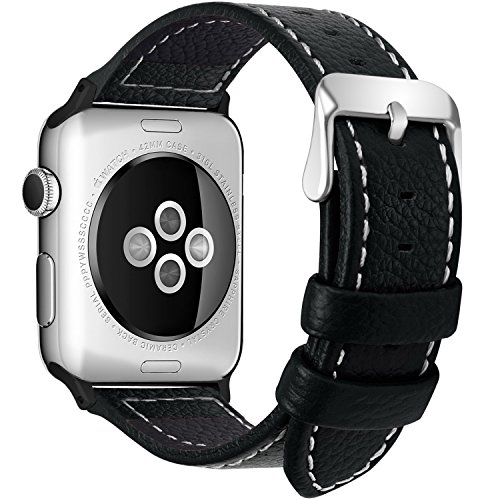 Apple Watch Bands, Fullmosa Jan Series Lichi Texture Calf Leather Strap Replacement Band/Strap with Stainless Steel Clasp for iWatch Series 1 & 2 Sport and Edition Versions 2015 2016, Black,42mm