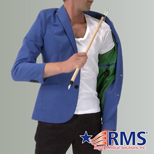 Studio : Royal Medical Solutions Publisher : Royal Medical Solutions Binding : Health and Beauty Product Description Royal Medical Solutions presents RMS Deluxe Dressing Stick which was designed carefully by healthcare professionals and made from high quality materials. The product is made here in the USA. The dressing stick is a dressing aid for putting on and taking off clothing and is suitable for individuals who have difficulty bending or limited movement. The dressing stick has a vinyl coated hook/pusher and a "C" hook on the opposite end to make dressing easier. The dressing stick measures overall 28" (L) from one end to the other. 100% Satisfaction Guarantee! 0