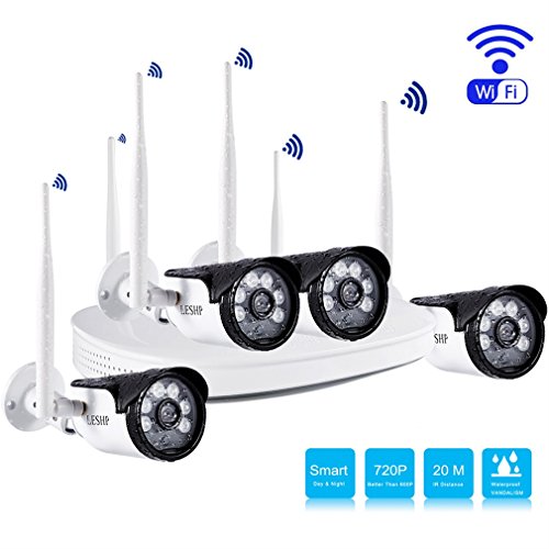 - ♪iUcar 4 Channel 720P Wireless Security Camera System for Villa, Home, Office, Shop, Warehouse or elsewhere(Indoor/ Outdoor), very stylish and compact,providing around-the-clock protection for your property.And it is a weather proof security camera,no worry about the weather any more.