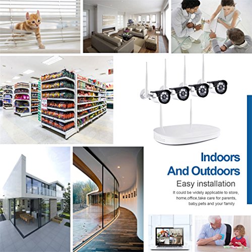 - ♪Wireless Surveillance Camera System Allows you to View the Live Video Remotely Anytime and Anywhere by Phone and Pad,available for Android and iOS devices,and the Wireless IP Camera System Supports Sync-playback, Video Backup and Video detection.