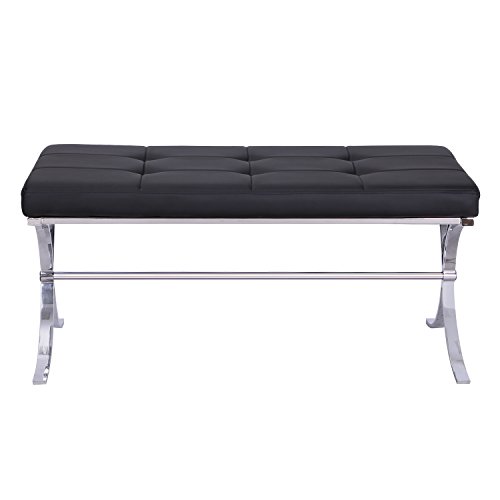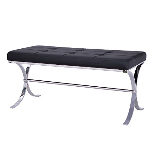 -. Feature : Joveco Textured Metal Legged Faux Leather Tufted Coffee Table Bench works well / Material: Stainless Steel, plywood and foam / Long seat with attractively metal legs and sturdy support rail / Product Dimension (Inch): 12W x 39L x 18H / Assembly required