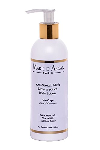 -. Feature : Marie d'Argan Moisture Rich Lotion provides deep moisturizing and softening treatment with antioxidants. / Through intense hydration the lotion combats dryness and improves skin elasticity. / Vitamin E in Argan Oil nourishes skin while Almond Oil softens and Shea Butter locks in hydration. / This combination of ingredients works to combat the formation of stretch marks and may reduce the appearance of existing stretch marks on the skin. / Find out more at: https://mariedarganusa.com/collections/all-products/products/stretch-mark-lotion