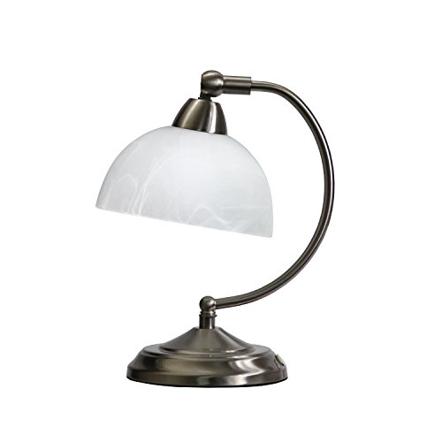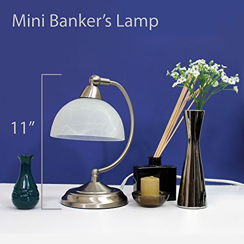 This modern mini banker's lamp features a curved arm and touch control dimmer base with an exquisite finish. The marble glass shade finishes the look. A charming, inexpensive, and practical desk lamp to meet your fashion lighting needs. Perfect lamp to complement your office décor.