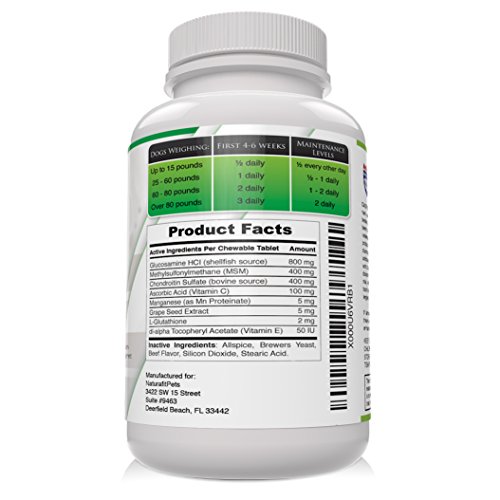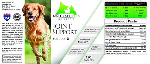 -. Title : Naturafitpets Premium Joint Support Supplement for Dogs 120 Delicious Beefy Tasting Chewable Tablets Glucosamine MSM and Chondroitin with Vitamin C and E for Healthy Hips and Joints.