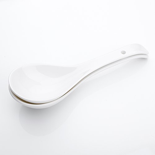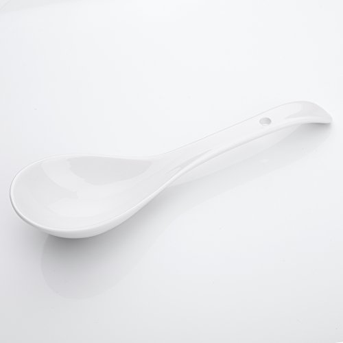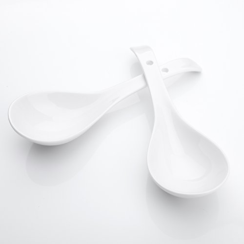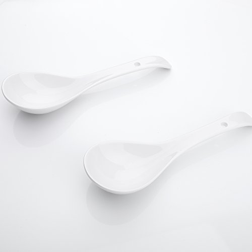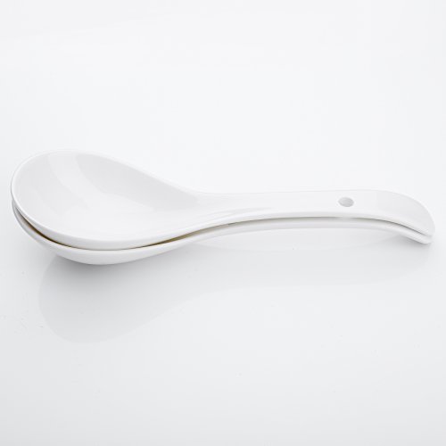 8.5" (21.5cm) White Porcelain Long Handle Stirring Spoons Soup Spoons - Set of 2