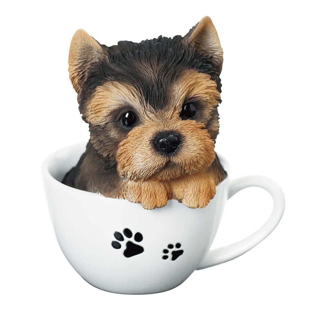 カップに入ったヨークシャー・テリアのオーナメント。お部屋の雰囲気を可愛らしくします。